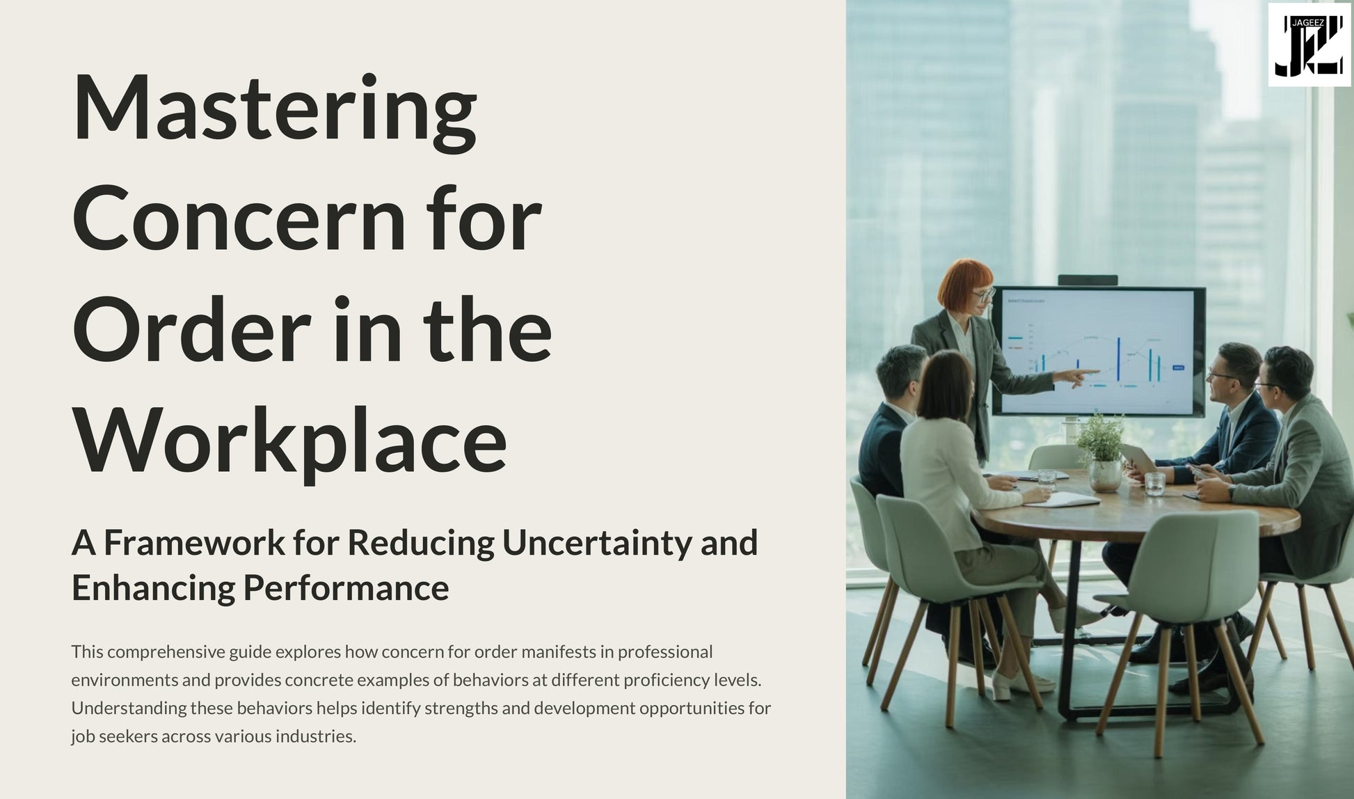 Reduce uncertainty and improve performance with our Mastering Concern for Order in the Workplace Guide. This digital resource provides a comprehensive framework for developing organizational clarity, accuracy, and systematic approaches that create consistency and reliability in professional settings.